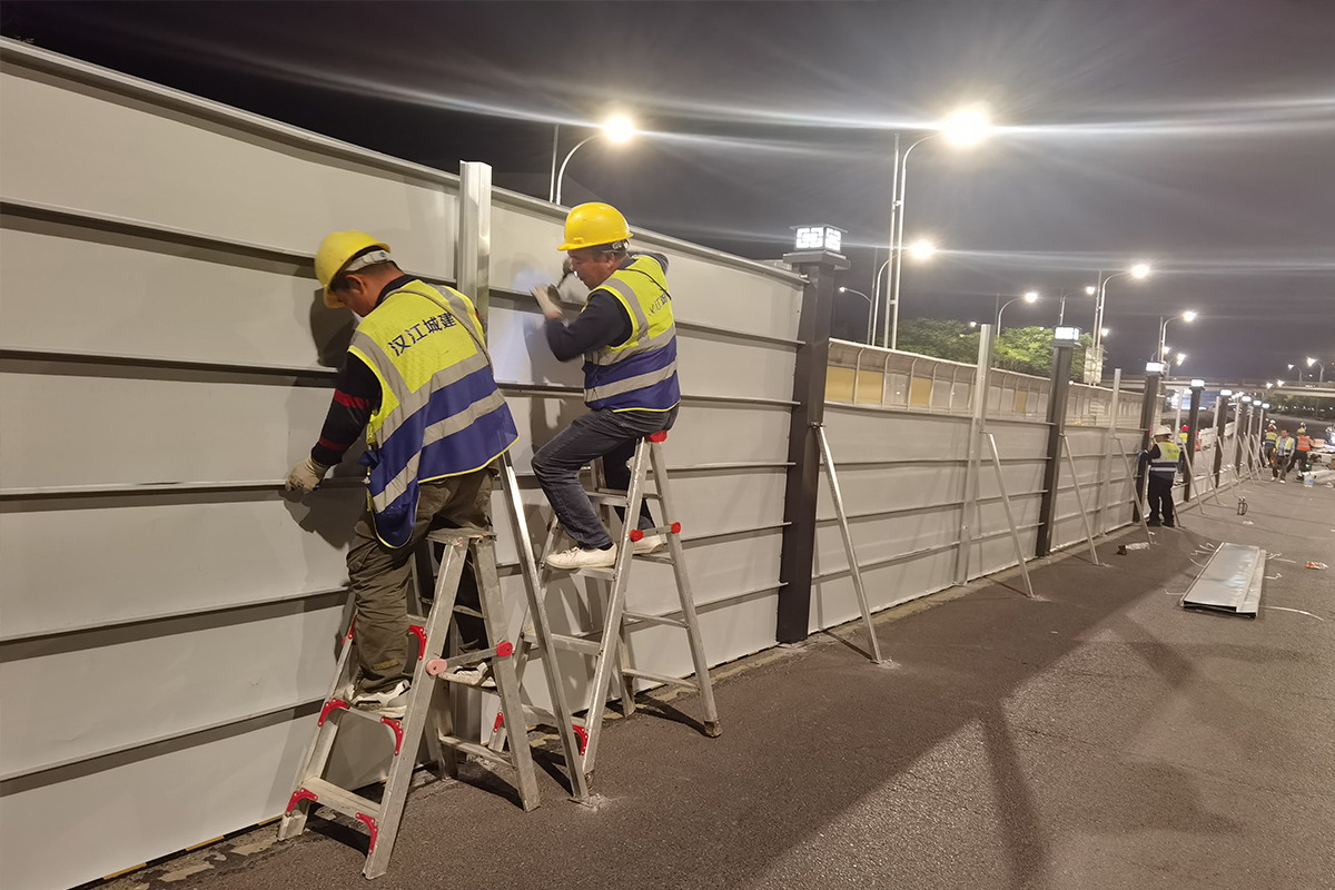 夜幕之下,全体施工人员克服夜间作业视线受限、连续施工疲劳等困难,从围挡搬运、精准组装到牢固安装,各环节衔接有序、忙而不乱。现场指挥有力、作业规范,在保障安全与质量的前提下,全力加快安装进度,最终顺利完成1000米市政围挡的安装任务,既保障了施工区域的安全封闭,又兼顾了城市景观的协调统一。
